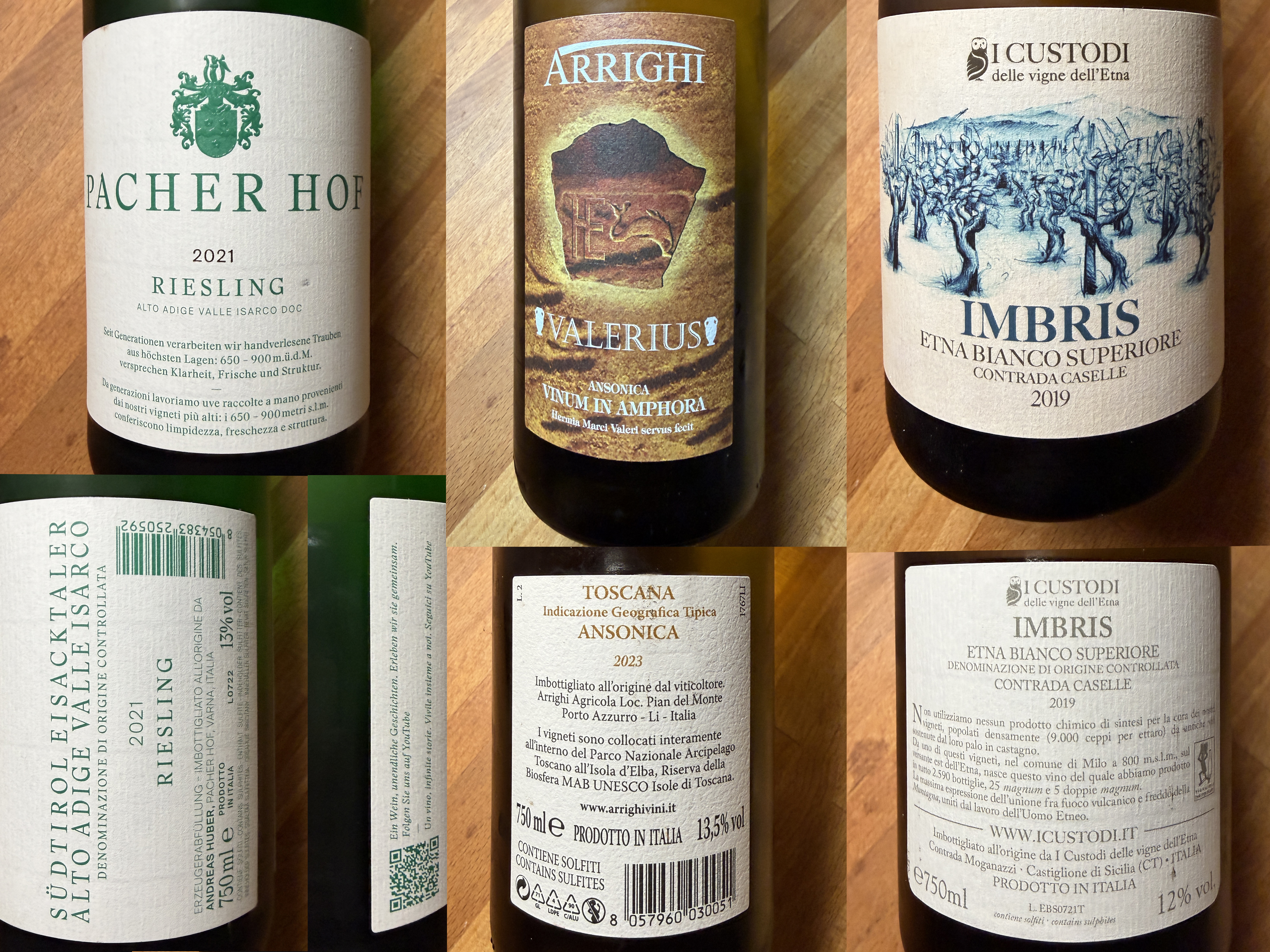 Dal Nord: risaliamo verso il Sud Tirolo per incontrare una interessante espressione italiana di Riesling, Pacher Hof Alto Adige Valle Isarco DOC 2021. Siamo oltre i 600 m slm, su terreni morenici ricchi di sostanze minerali che anche in questo caso segnano lo spettro olfattivo e il palato, per un vino che riesce a essere tagliente, però sempre di corretta acidità per tutta la sua buona persistenza, sfruttando anche l’alcol, 13% Vol. per contrastare anche Gulasch belli speziati.